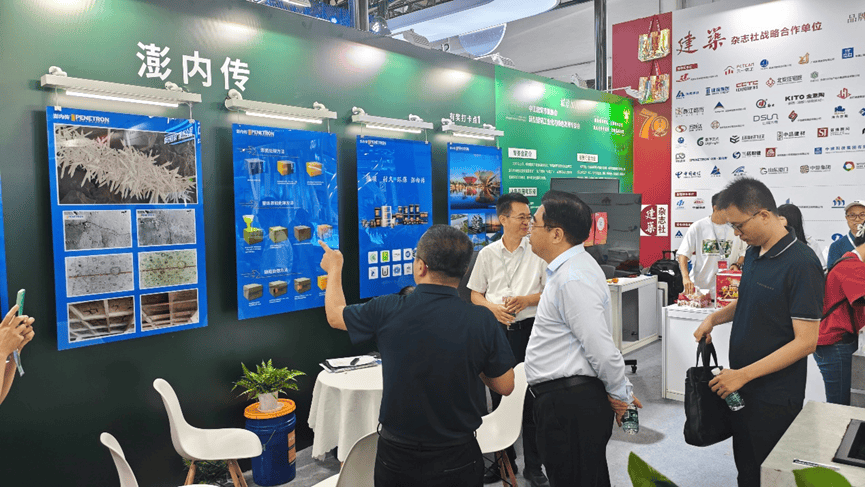 北京澎內(nèi)傳公司展出了全球領(lǐng)先的混凝土滲透結(jié)晶自愈合技術(shù)以及系統(tǒng)產(chǎn)品,展板上生動形象的展現(xiàn)出滲透結(jié)晶的技術(shù)原理、電鏡下的結(jié)晶形貌和實(shí)效工程照片等;實(shí)物水池模型與試塊直觀地看到結(jié)晶自愈合后的功效。澎內(nèi)傳先進(jìn)的滲透結(jié)晶科技不僅能從根本上解決混凝土結(jié)構(gòu)的滲漏水頑疾,還能提高混凝土整體的耐久性,延長結(jié)構(gòu)的使用壽命60年。產(chǎn)品低碳環(huán)保,為我國造就高質(zhì)量建筑和可持續(xù)發(fā)展的目標(biāo)提供堅(jiān)實(shí)的技術(shù)基礎(chǔ)和科學(xué)的安全保障,更好的滿足人們對好房子的需求。